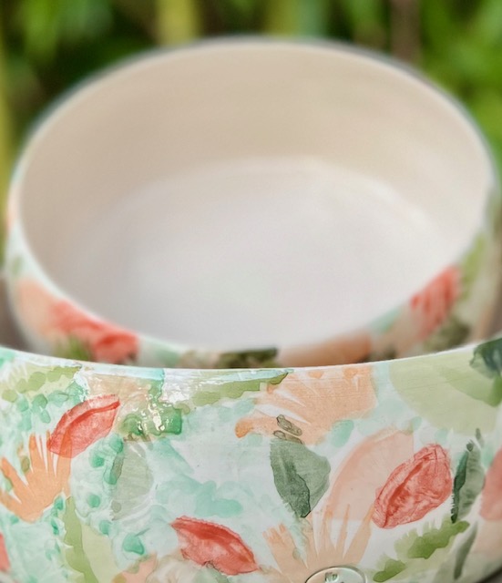 Les pièces sont en faïence blanche ou en terracota puis colorées aux engobes. Elles passent au lave vaisselle et au micro onde. En revanche, il est déconseillé de les mettre au four.